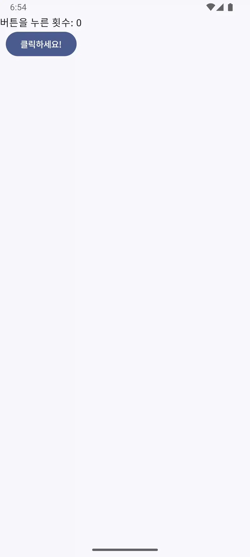 var count by remember { mutableStateOf(0) }: count라는 이름의 상태 변수를 선언하고 초기값을 0으로 설정했습니다. remember로 감싸주었기 때문에, count 값이 1, 2, 3으로 변해도 화면이 재구성될 때 다시 0으로 돌아가지 않습니다.