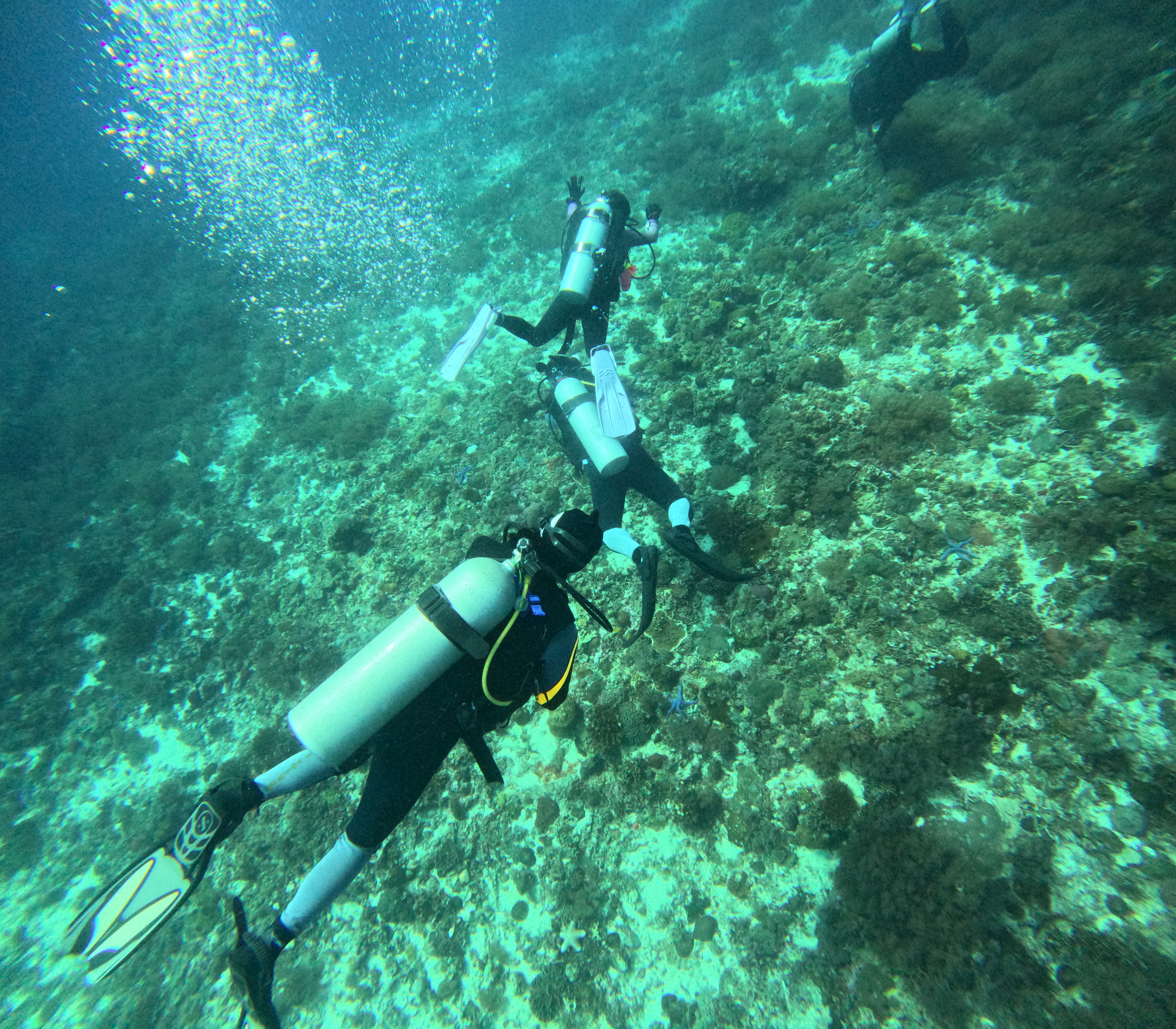파도가 조금 있어서 다른 배들은 먼저 갔고 우리는 남아서 마지막 다이빙을 진행했다.