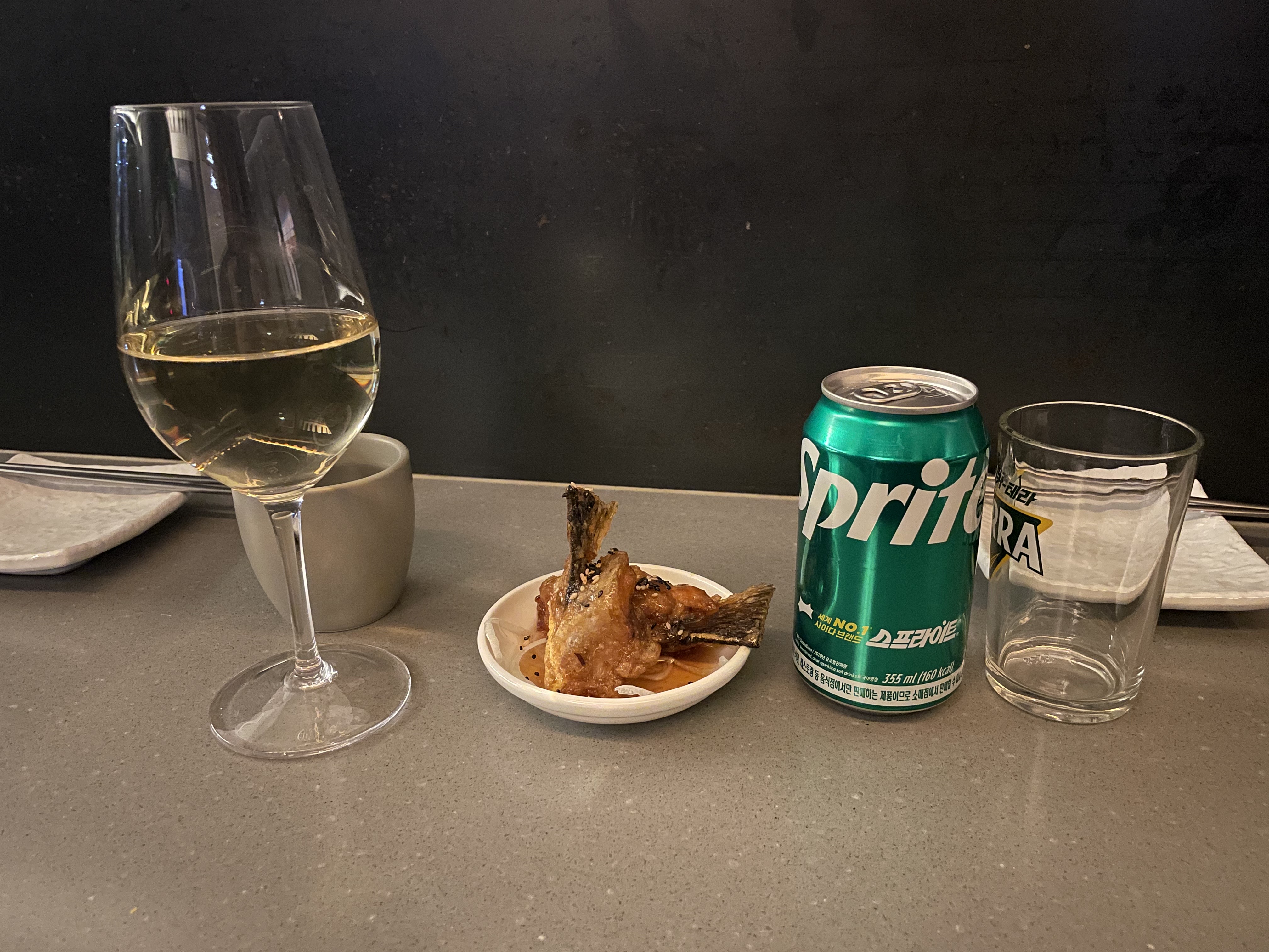 여기는 1인 1 음료를 주문해야 했는데 저는 차를 가져와서 사이다 마시고 친구는 하우스 와인을 마셨어요.