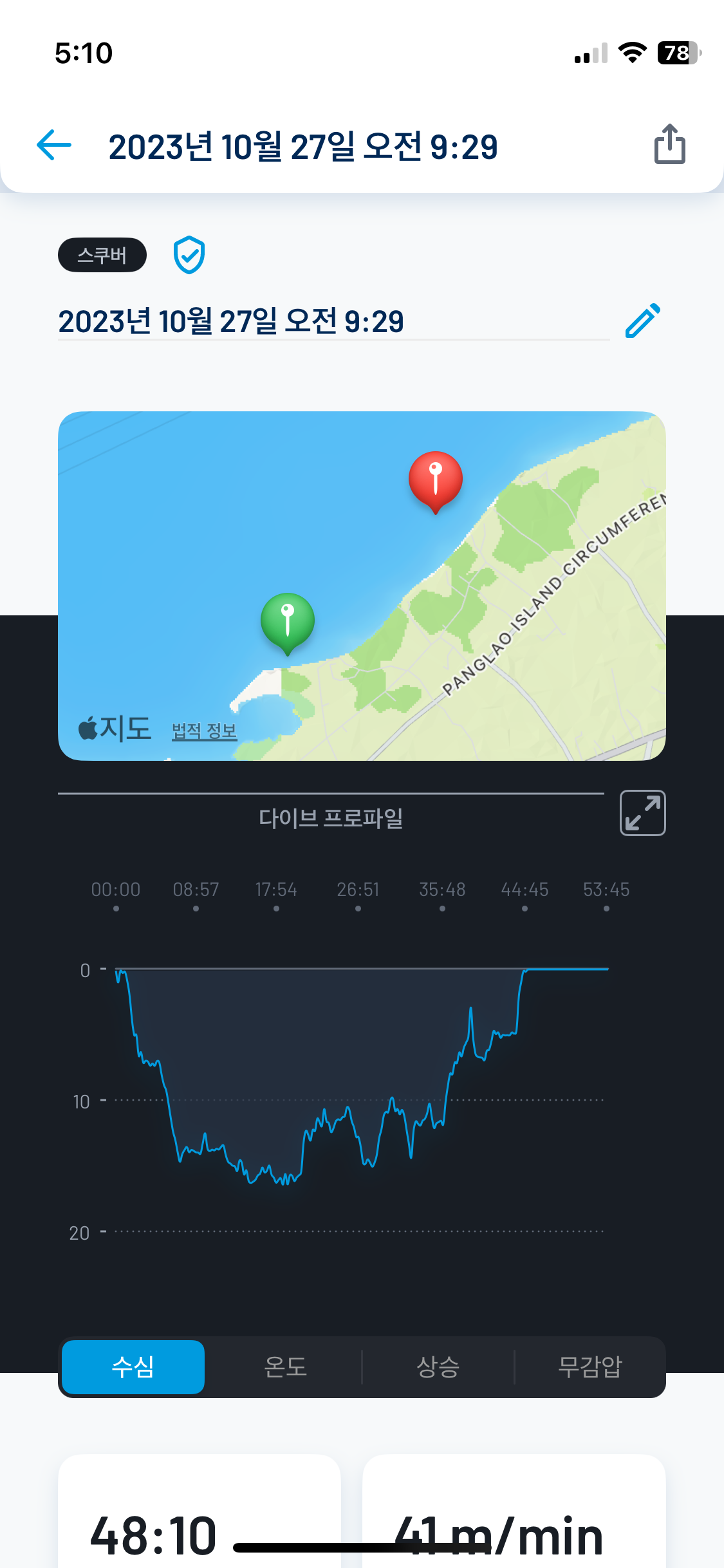 다이브 시간: 48분