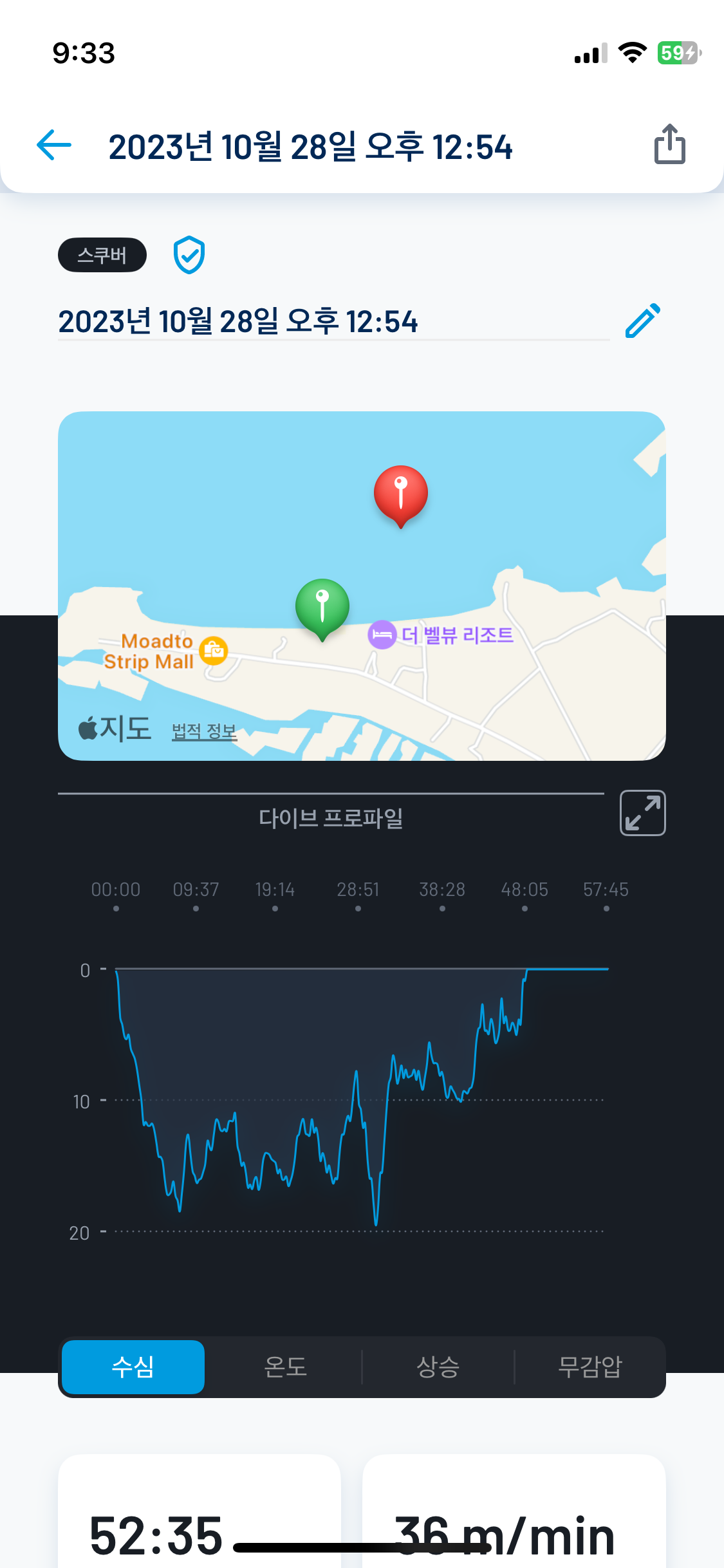 다이브 시간: 52분